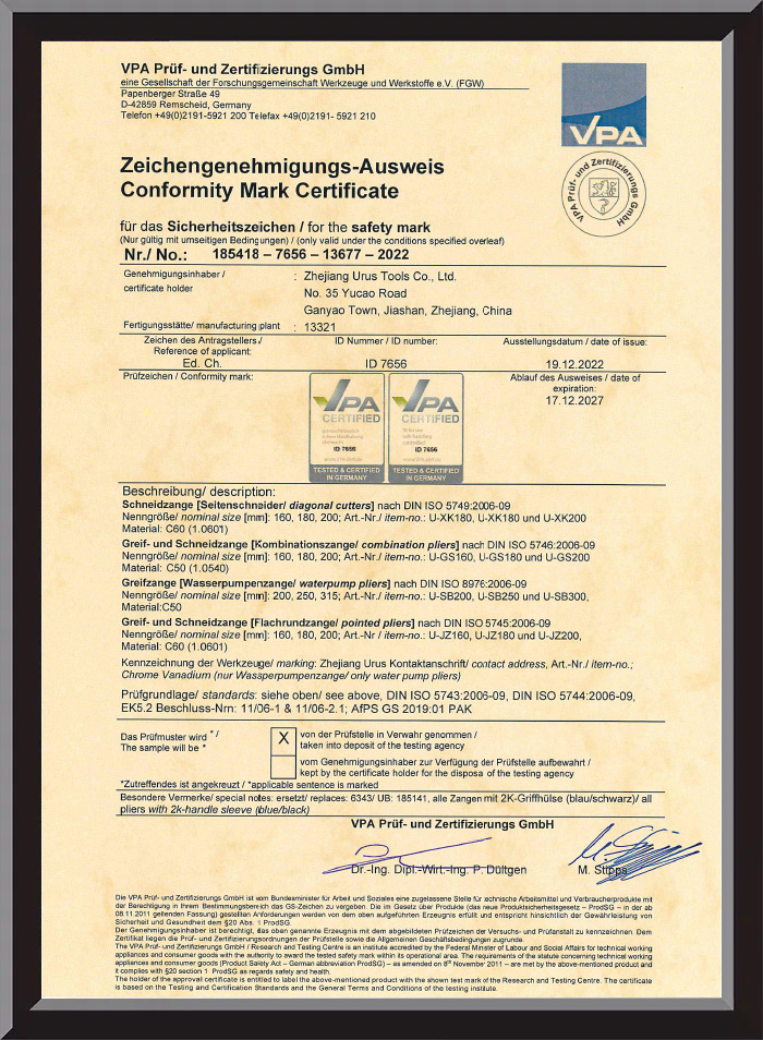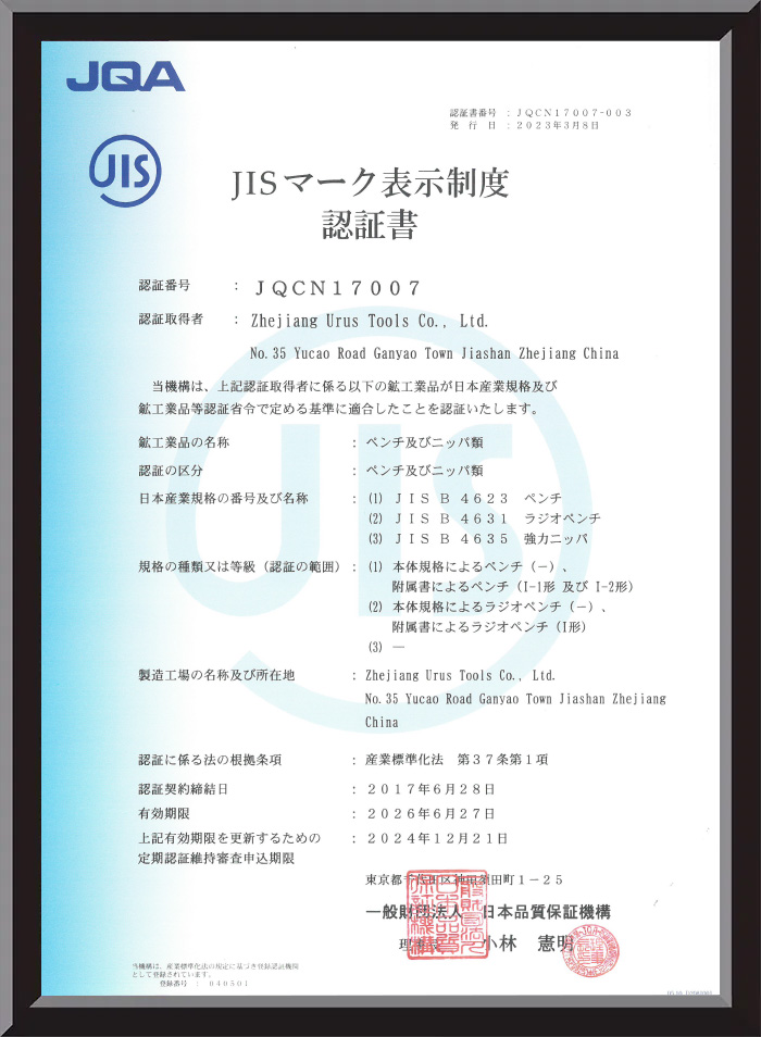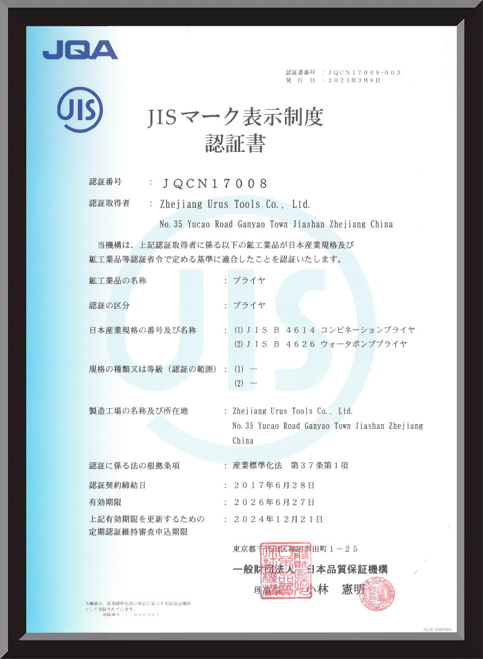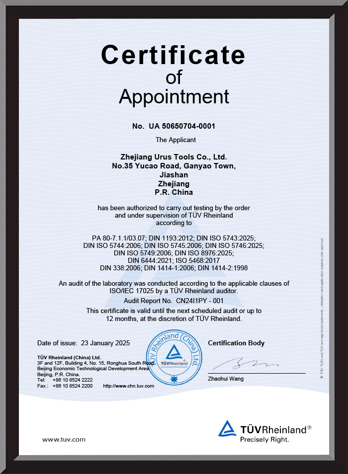 Zhejiang URUS Tools Co., Ltd ก่อตั้งขึ้นในปี 1995 เป็นผู้ผลิตมืออาชีพที่เชี่ยวชาญด้านดอกสว่าน คีม และชุดเครื่องมือช่าง ด้วยการรับรอง ISO9001:2015 และรางวัลระดับชาติหลายรางวัล บริษัทเน้นคุณภาพ นวัตกรรม และการออกแบบตามหลักสรีรศาสตร์ในผลิตภัณฑ์ทั้งหมดของบริษัท URUS Tools รวมหลักการออกแบบที่คำนึงถึงผู้ใช้เป็นศูนย์กลางไว้ในคีม ผสมผสานความสะดวกสบาย ความทนทาน และความแม่นยำเข้าด้วยกัน เพื่อตอบสนองความต้องการของผู้ใช้มืออาชีพและผู้ใช้ DIY ทั่วโลก