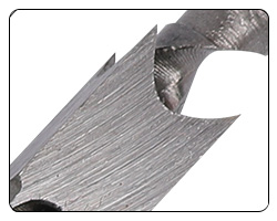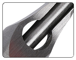 ตัวสิ่วซึ่งกราวด์และชุบแข็งอย่างแม่นยำ ได้รับการขัดผิวด้านนอกและกลึงมุมเอียงด้านในอย่างนุ่มนวลเพื่อให้เจาะได้ง่าย