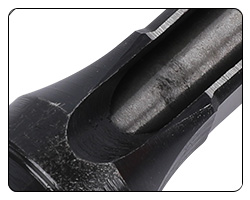 ตัวสิ่วซึ่งกราวด์และชุบแข็งอย่างแม่นยำ ได้รับการขัดผิวด้านนอกและกลึงมุมเอียงด้านในอย่างนุ่มนวลเพื่อให้เจาะได้ง่าย